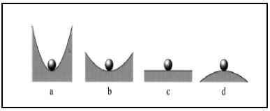Ahora bien, si la pelota asienta sobre superficies cada vez más planas hasta llegar asuperficies convexas, la energía requerida para desestabilizar dicho sistema se torna cada vez menor y el retorno de la pelota a la zona de neutralidad es cada vez más complejo y difícil. Podemos decir aquí que la energía perturbadora supera a la energía potencial estable del sistema (Figura 2).